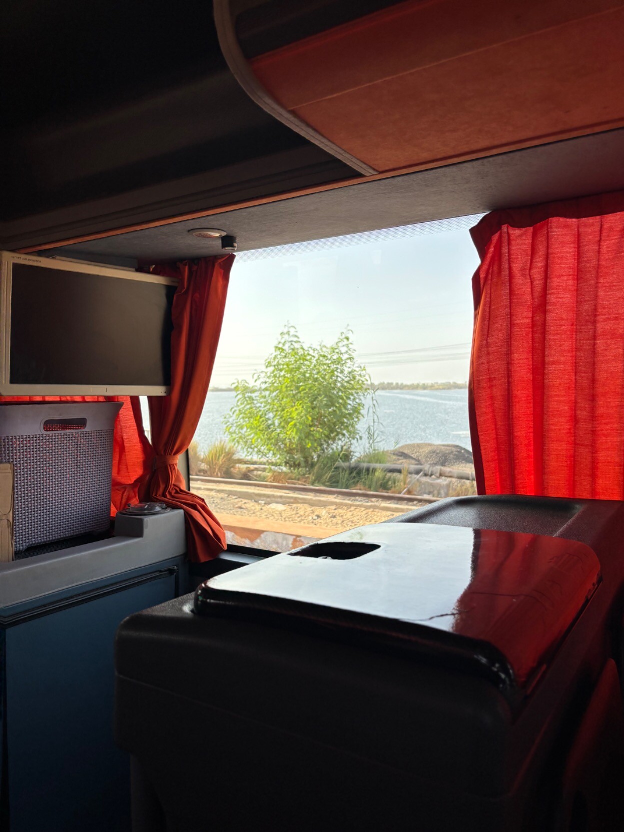 我好喜欢阿斯旺🥰远处有非常冷漠的沙漠,沙漠上铺一层黑色的石头,但行驶的路上有绿色的树和紫、白、橙色的花,而且还有美丽的尼罗河,远看是绿色的,近看又蓝,像海🥺