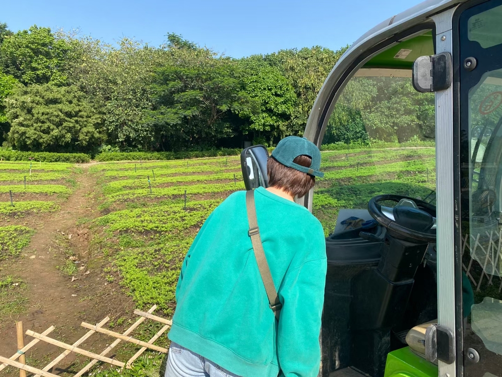 在森林里看花晒太阳的小熊